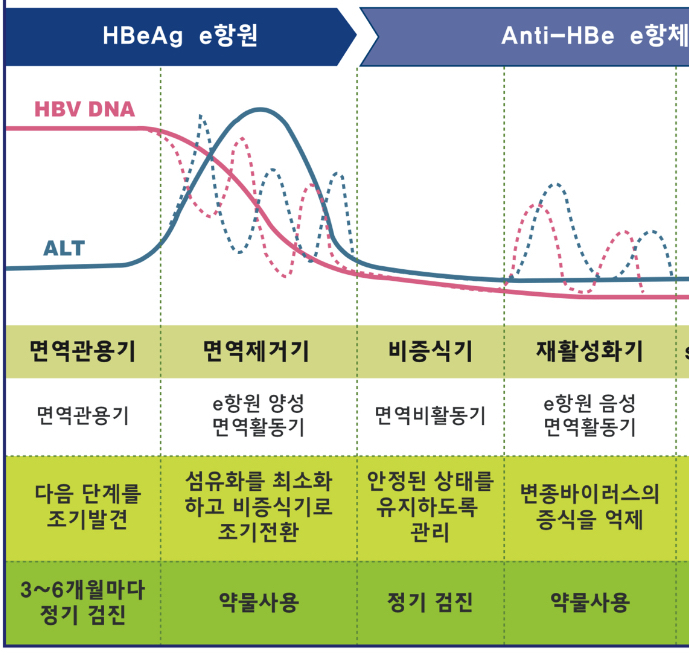 이 시기를 어떻게 겪어 내느냐에 따라서 추후 간경변이나 간암의 위험율이 달라진다고 합니다.
